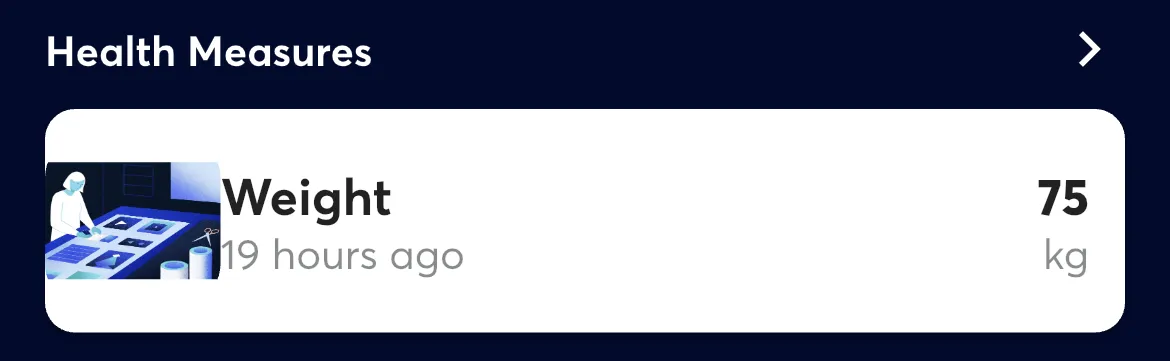 Tapping a row navigates to the Add Health Measure screen for that measure type, where participants can record a new reading. The section only appears if health measures are configured - otherwise it is hidden entirely.