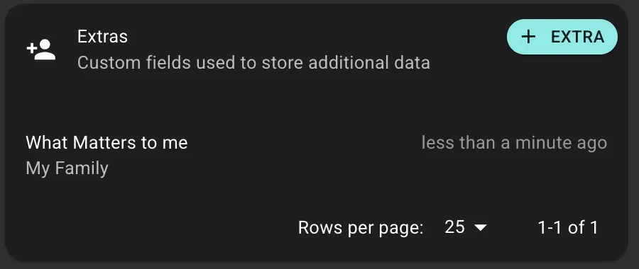 Extras are custom fields for storing participant-specific information that doesn't fit standard profile fields. They provide flexibility to capture unique data points your organization requires.